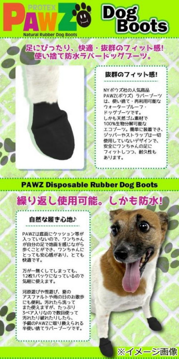 天然ゴム素材で100%生物分解可能。使い捨て・再利用もできる犬用ウォータープルーフ・ドッグブーツです。 製造国:タイ 素材・材質:天然ゴム 商品サイズ:3.8-5.1cm(足裏幅) 仕様:手洗いのみ可 セット内容:12枚1パック ※サプライヤー直送品 ご注文後2~3営業日後の出荷となります【商品名】正規輸入品 アメリカ Pawz Dog Boots社製 ポウズ ラバー・ドッグ・ブーツ XS Black PZBLKXS