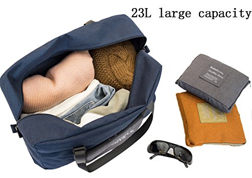 Product Description Features: - The canvas material is waterproof durable and will resist tearing. - Two way zipper closure, it's easy to get what you need in the bag. - Large capacity : It is 23L,almost as the capacity of 18inch suitcase, - Multiple pockets are usable, folded or unfolded. - Folds up super small and thin to fit inside smaller bags and gym lockers. - It can be used as a large sports and gym duffle bag as well as travel duffle when you are on and about. - You can put it into the luggage as a storage bag or organize your numerous stuff in daily/ travel, such as clothes/ shoes/ heath or beauty items. - It's fashionable and outstanding design which will make your journey more colorful and graceful. - 100% Brand New, you will love it as soon as you get your foldable travel duffel. 0