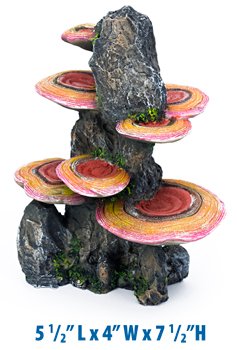 -. Binding : Misc. -. Brand : Penn-Plax -. Feature : Made of non-toxic and fish-safe resin / Suitable for both fresh and salt water / Realistic rock is accented with pink mushrooms / Brings a natural environment for your aquarium / Dimensions: 5.5L x 4W x 7.5H in. -. Label : Penn Plax Inc -. Manufacturer : Penn Plax Inc -. MPN : RR1010 -. PackageQuantity : 1 -. PartNumber : RR1010 -. ProductGroup : Pet Products -. ProductTypeName : PET_SUPPLIES -. Publisher : Penn Plax Inc -. Studio : Penn Plax Inc -. Title : Penn Plax Pink Mushrooms on Rock Aquarium Ornament - Medium - 5.5L x 4W x 7.5H in.