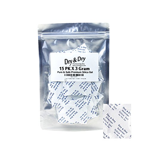 3 Gram [15 Packets] "Dry & Dry" Premium Pure & Safe Silica Gel Packets Desiccant Dehumidifier - Rechargeable Paper