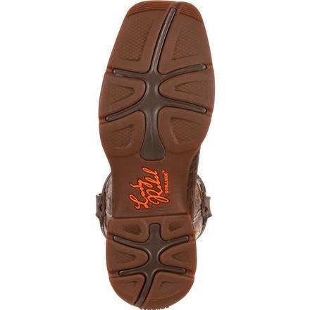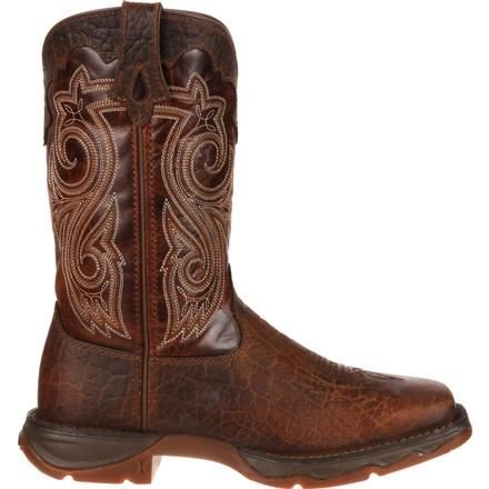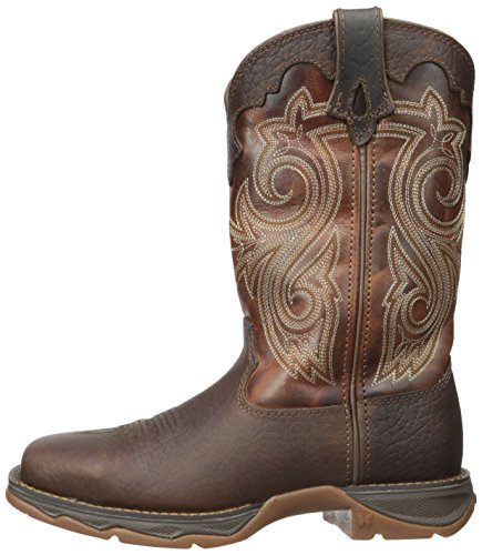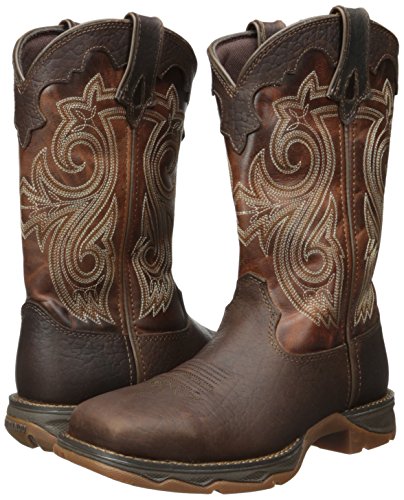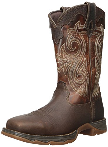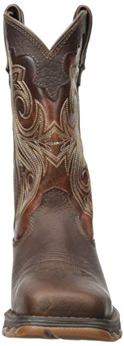 Studio : Durango Publisher : Durango Binding : Apparel Product Description From the exterior, this 10 ;? Lady Rebel boot resembles a traditional-looking Western. It has dark brown full-grain leather on its upper, a dipped topline, pull tabs, fancy stitching on the shaft and a square toe. Yet, what distinguishes this Western from the rest is its steel protective toe; it has met the ASTM F2413-05 I/75 C/75 Protective Toe Classification and can withstand up to 75 lbs. of impact and compression, as well as meeting the Electrical Hazard Standard. Whether you wear them to your job or want to keep your toes protected around the barnyard, your feet will be safe in these boots. Within the interior, your legs are surrounded by a soft mesh lining. This lightweight material will protect your legs from getting irritated and will keep the interior nice and airy. There is a cushioned footbed to ease your steps and make walking in these Western boots a comfortable experience. By adding in a tempered steel shank, these brown leather boots offer both stability and support. The outsole is extremely lightweight, resistant to abrasions and offers great flexibility. The 1 ¼ ;? rocker heel is low; you will remain comfortable even if you are working all-day long in these boots. A stylish-looking leather boot that offers comfort and unbeatable safety features, this ?Lady Rebel by ?Durango Women's Steel-Toe Western is a great find! 0