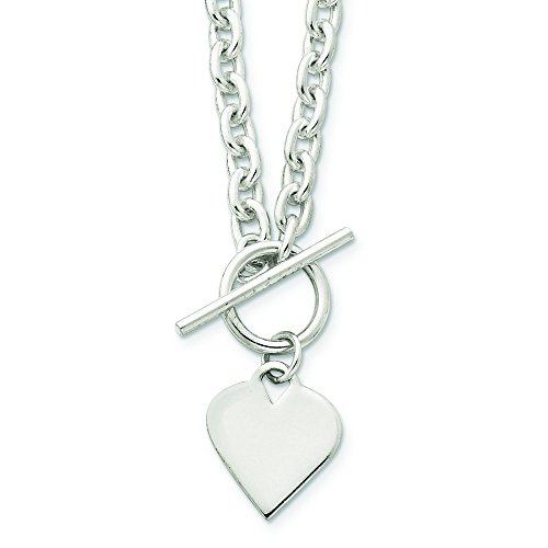 Sterling Silver Engraveable Heart Toggle Necklace - 18 Inch - 34.7 Grams in Sterling Silver - Product Attributes: - Engraveable - Polished - Solid - Toggle Closure - JewelryWeb Style: QTP118756SS - FREE gift-ready jewelry box