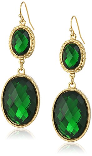 Gold-tone drop earrings featuring oval-shape green faceted stones