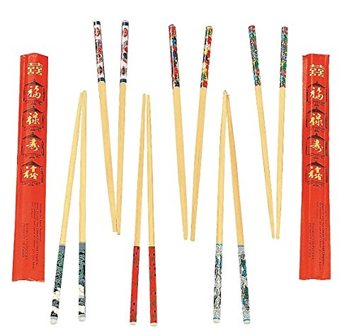 Studio : fun express Publisher : fun express Binding : Toy Product Description Decorated Chopsticks. In Asian culture, chopsticks are used in place of forks. Master your use of these exotic utensils with our wooden decorated chopsticks. Each pair comes in a colorful paper wrapper. They're a fun addition to a Chinese dinner party! (2 dozen pairs per unit) 9" 0
