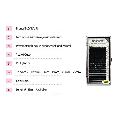 NAGARAKU Eyelash Extensions Individual Faux Mink Eyelash C Curl Thickness 0.20mm Length 7-15mm Artificial Fake False Eyelashes 7-15mm Mixed In One...
