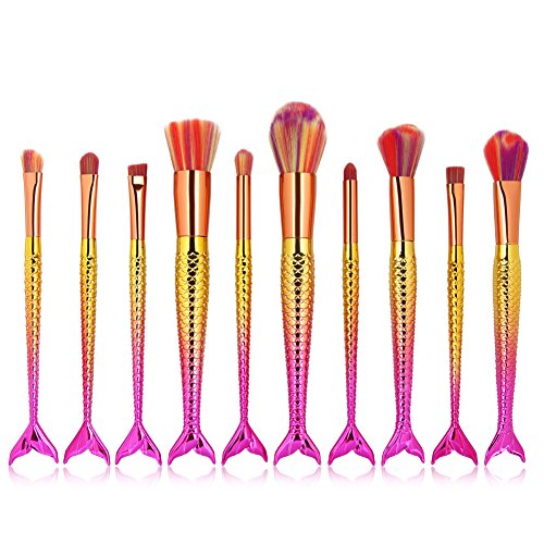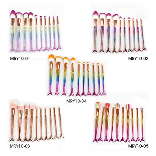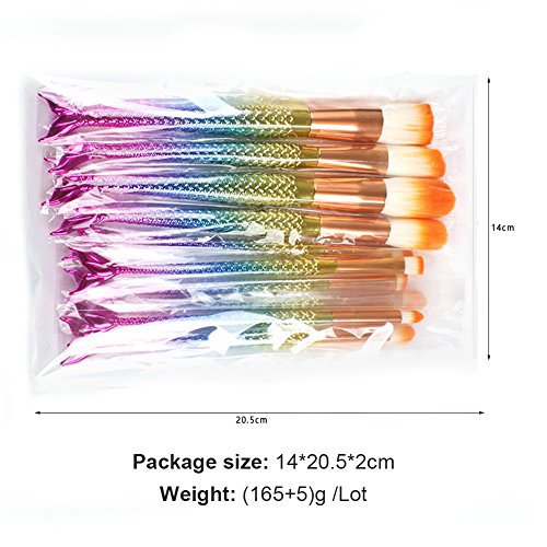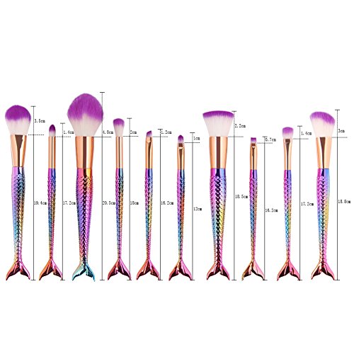 10pcs Mermaid Makeup Brush FishtailBottom Blush Brush Face Powder Blending Cosmetic Eyeshadow Brush Beauty Cosmetic Tools