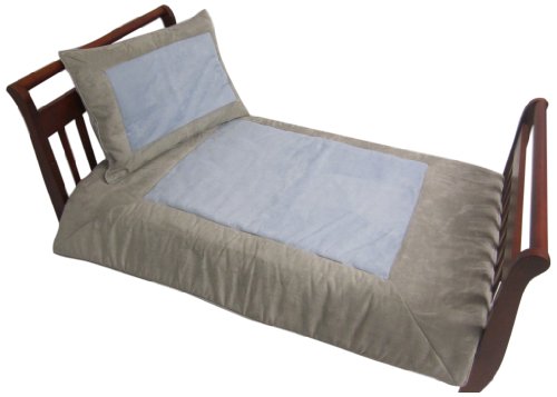 Studio : Baby Doll Bedding Publisher : Baby Doll Bedding Binding : Baby Product Product Description A toddler bedding set that is sure to catch the eye. Our Zuma toddler bedding is made of a combination of grey and blue suede look fabric. A fantastic combination that is as comfortable as it is unique. A beautiful comforter, fitted sheet, flat sheet and pillow sham make the set complete. A magnificent display of color and contrast. 0
