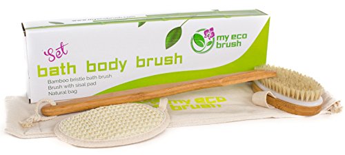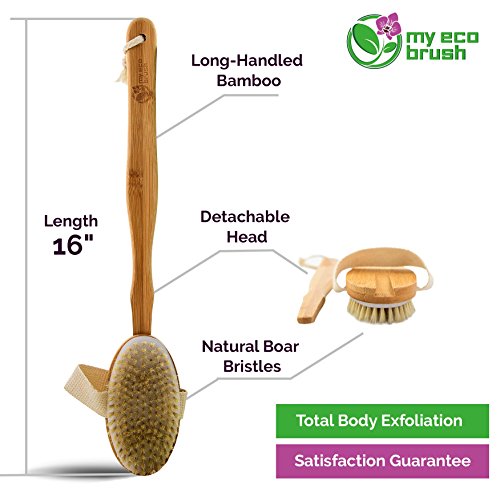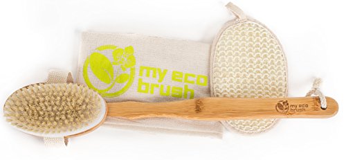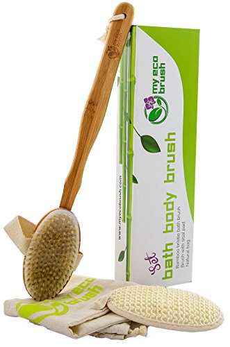 My Eco Brush Perfect for Dry Brushing – Bamboo Bath Body Brush for Back Scrubber – Natural Bristles Shower Brush with Long Handle & Sisal Pad to Exfoliate...