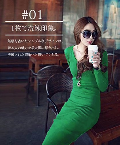 -. Title : (メリュエル) meryueru リブニット ロング丈 ワンピース Vネックス 無地 シンプル デザイン ストレッチ 長袖 レディース