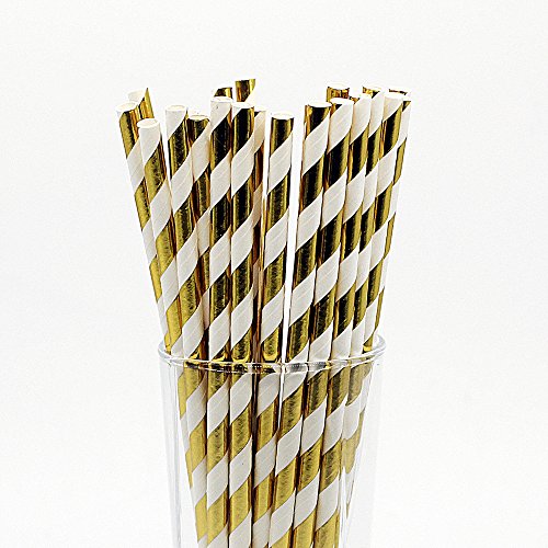 CTIGERS Metallic Gold Striped Paper Straws Pack of 25