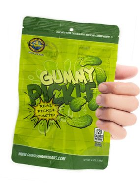 -. Feature : Giant Gummy Hot Dog, Hamburger & Pickle Sampler / 1- Giant Gummy Hamburger (7oz): Almost a half pound of cherry flavored Gummy Hamburger complete with with cheese, lettuce & tomato, each individually flavored! / 1- Giant Gummy Hot Dog (7oz): This oversized soft gummy looks just like a real hotdog, topped with gummy mustard and relish and served in a gummy bun! / 1- Giant Gummy Pickle (4.5oz): Made with Real Dill Pickle Flavoring / GREAT GIFT FOR ANY OCCASION!