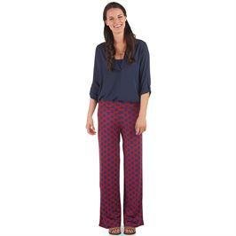 Product DescriptionEasy-wear, easy-care poly jersey pant has ruched, fold-over waistband and flattering wide leg. Inseam measures approximately 31" on size small.0