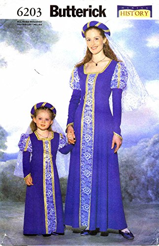 -. Title : Butterick 6203 Historical Dress Costume Sewing Pattern Childrens Girls Misses