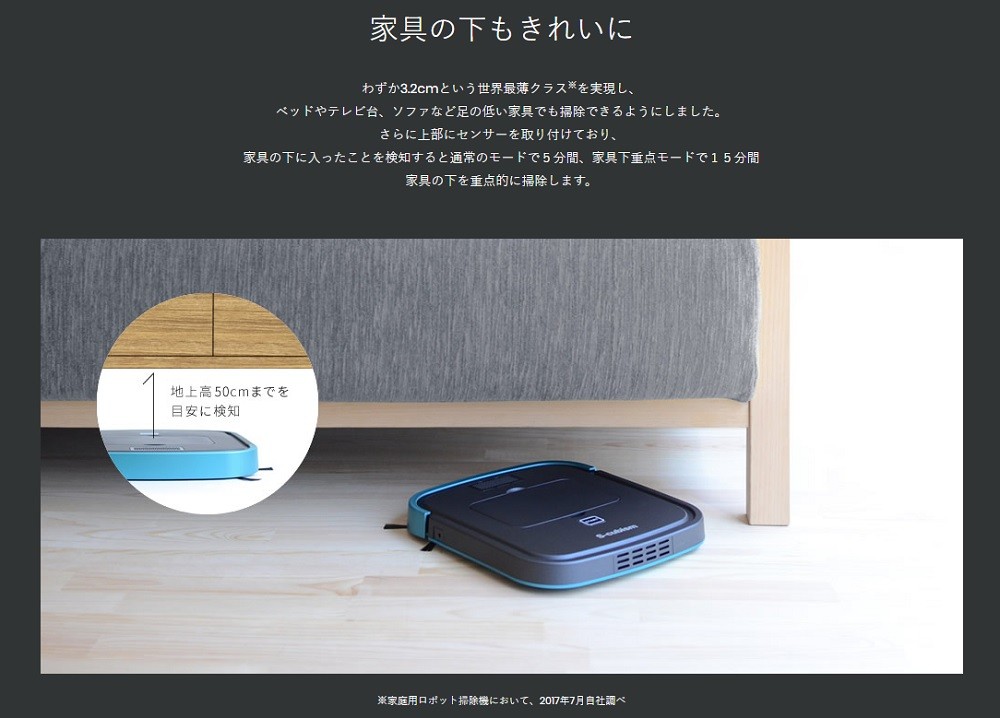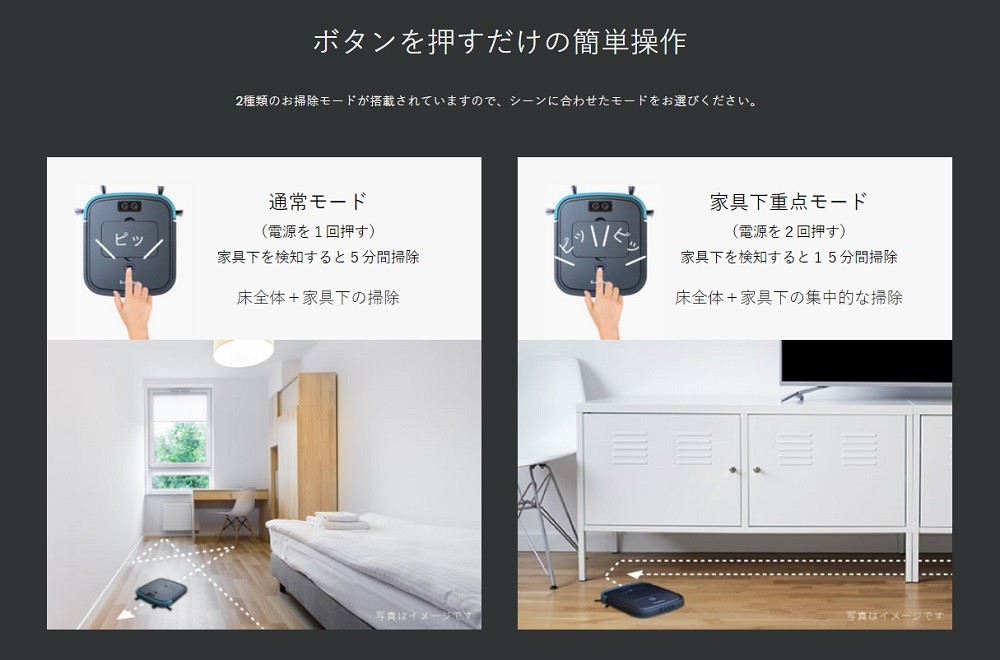 掃除モード:通常モード/家具下重点モード(地上高50cm目安に検知)