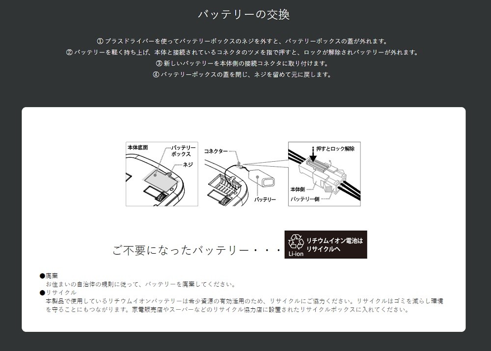※本製品にはブラシ・フィルター・バッテリーの消耗品が含まれます。別売でご用意がありますので、弊社「お客様相談窓口」までお問い合わせください。