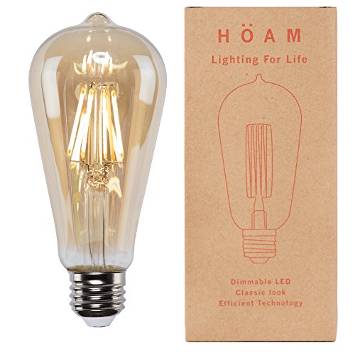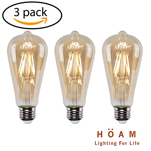 3 Pack Edison Bulbs from HOAM Lighting, Dimmable LED Filament, Antique Style, 4W LED 40W Incandescent Equivalent 4000K Warm Amber Color Temperature, ST18 ST64, E26 E27 Screw Cap, 120V