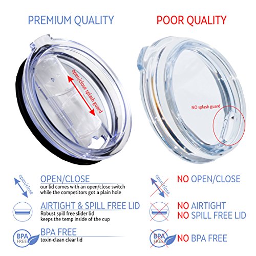 -. Feature : NEW DESIGN: BPA-free crystal-clear plastic lid with open/close switch that acts as splash/spill guard, and a hole perfect for straws & direct sipping. please note: this is splash-proof, not leak proof. / PERFECT SEALING: High-quality rubber and easy-to-use design, keeps the hot/cold liquid insulated in your tumbler longer. This lid is terrific for traveling, thanks to its splash-guard switch, and it will serve you perfectly at the leisure of your home, as well, with or without a straw. / GREAT COMPATIBILITY: This high-quality plastic lid fits our SASQUATCH and most 30 oz tumbler brands out there: yeti, rtic, sic, beast, tum-tum, the-berg, iceberg, thermic, epic, magnum steel and more...). / LUXURY BRAND: Our lids comes with our Snow's Luxury Kitchen SLK logo. we are very proud of our products and the SLK signature means you go the best product out there! / VALUE 4 MONEY: buy 2 and get 10% off. buy 3 and get 15% off. buy 4 or more and get 20% off!