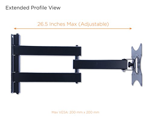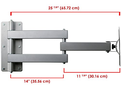 -. Brand : Mount-It! -. Feature : For VESA standard: 50, 75, 100, 200 / Max. loading capacity: 30kg/66 pounds / Suitable for LCD from 17" to 37" (Please check VESA standard and ensure the bolt holes on your TV match the mount bolting pattern) / Max. extension: 25.85 inches / Swivels left and right up to 180 degrees. Tilts upwards and downwards up to 20 degrees -. Label : Mount-it -. Manufacturer : Mount-it -. Model : MI-3411 -. PackageQuantity : 1 -. ProductGroup : Furniture -. ProductTypeName : HOME_FURNITURE_AND_DECOR -. Publisher : Mount-it -. Studio : Mount-it -. Title : Mount-It! NEW Universal Silver 3 Way Adjustable Swivel Swiveling Tilt Tilting Articulating Full Motion Corner TV Wall Mount Bracket VESA 50x50 75x75 100x100 200x100 200x200 with 25 7/8" extention