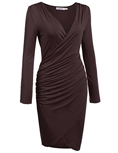 Fashion designed : Long sleeve ,v neck dress,knee length,irregular hem,ruched dress,bodycon,pencil dress .Unique style, create a illusion for stunning curves, make you more beautiful, fashion and elegant receive compliments.