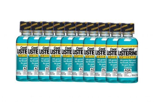Studio : Listerine Publisher : Listerine Binding : Health and Beauty Product Description Listerine Antiseptic Mouthwash Cool Mint Kills germs that cause bad breath, plaque the gum disease Gingivitis. Has the American Dental Association Seal of Acceptance for helping control plaque and gingivitis. Perfect size for traveling Air travel approved size - TSA compliant. 0