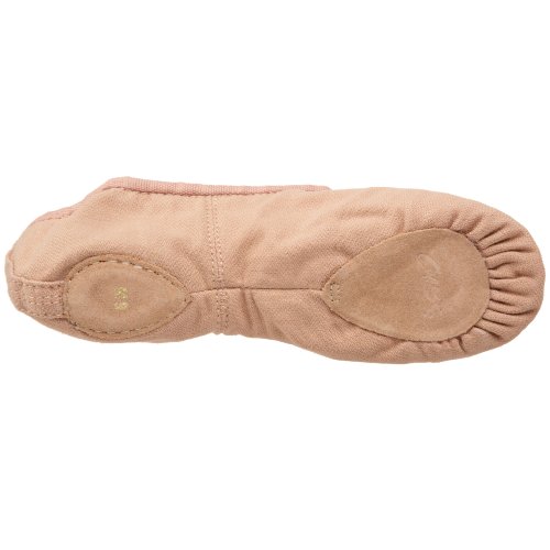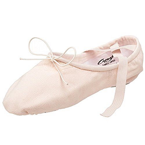 Studio : Capezio Publisher : Capezio Binding : Apparel Product Description Constructed of a lightweight canvas from ultra-soft woven cotton fibers Split sole Sculpted pre-arched design hugs the foot Forefoot patch has clean hidden stitching for comfort and strength Soft hung polyester/cotton lining Precision trimmed forefoot padding ensures a flat shoe Chrome tanned suede sole patches in contoured tear drop shape Bar-tacked elastic drawstring 3/8" elastics pre-attached at the heel Shaped on a women's last Also available in child sizes Begin with street shoe size