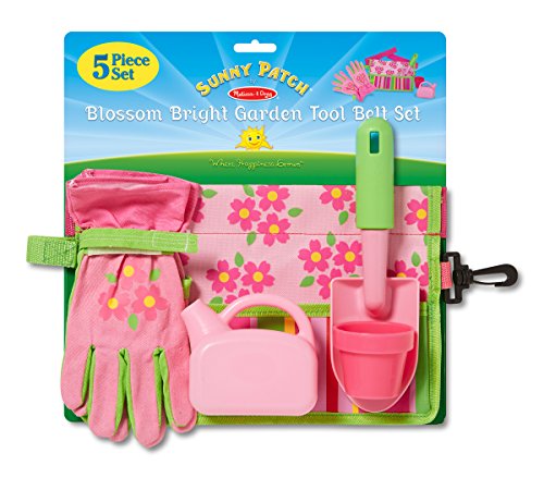 Studio : Melissa Doug Publisher : Melissa Doug Binding : Toy Product Description Made by Melissa Doug. Young gardeners will love using these child-size tools to care for flowers, veggies, and all sorts of growing things! The five-piece set--featuring pretty Blossom Bright--includes a sturdy tool belt with adjustable self-stick closure and pocket, gardening gloves, trowel, watering can, and plant pot. Self-stick tabs make it easy to attach the gloves and watering can to the belt, and the generously sized pocket leaves plenty of room for other tools. Just add water and watch your garden--and child?blossom!. 0