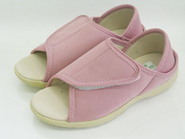 軽やかな履き心地、オープントゥタイプ!かかとを踏めばサンダル(スリッパ)として使えます。スリッパ代わりに室内履きとして、履いたり脱いだりが多い時やヘルパーさんの仕事用などに便利です。