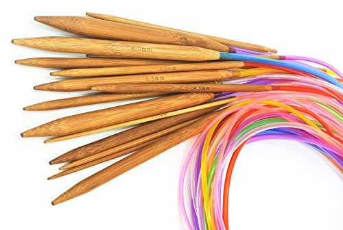 Bamboo Circular Knitting Needles Set with 47" Colorful Flexible Tube ,Single Pointed Bamboo Knitting Needles Set 10" 18 Sizes(2.0mm--10.0mm) RELIAN