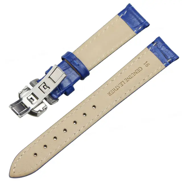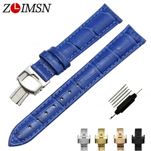 ZLIMSN 블루 손목 진짜 가죽 범용 시계 스트랩 대나무 곡물 시계 벨트 교체 스틸 버클 액세서리 시계