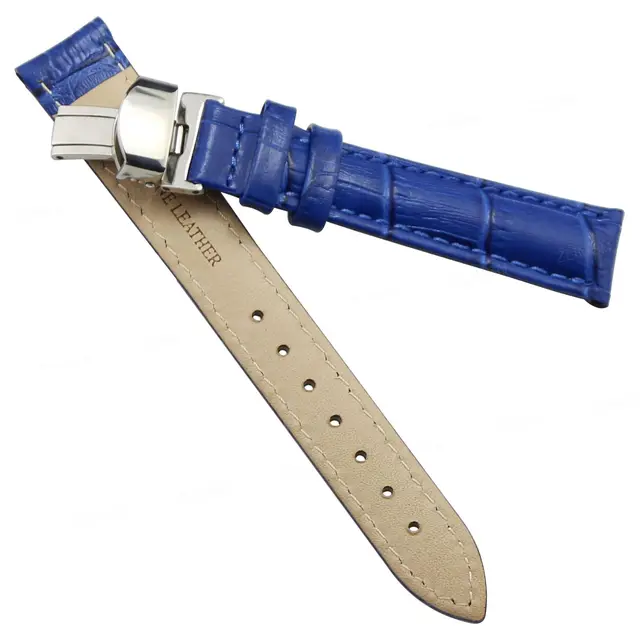 [해외]Zlimsn 블루 손목 진짜 가죽 범용 시계 스트랩 대나무 곡물 시계 벨트 교체 스틸 버클 액세서리 시계