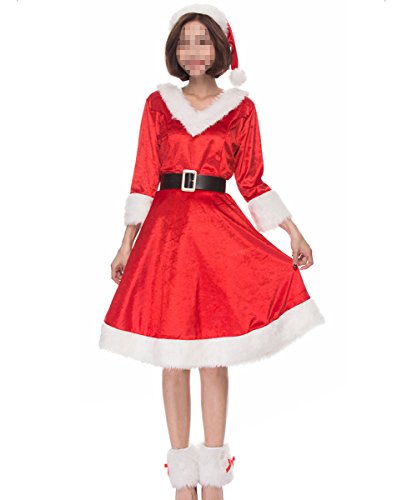 -. Feature : Material: Velvet. / Package Including: 1*Hat,1*Dress,1*Belt,1*Leggings. / Medium: Bust 34.65" Waist 28.35" Dress Length 39.37". / Large: Bust 36.22" Waist 30.71" Dress Length 40.16". / Christmas Holiday is approaching, Wear it to celebrate Christmas holiday, adds Christmas atmosphere, catch the eyes and gets you in the mood for Christmas. Special design for Christmas Party.