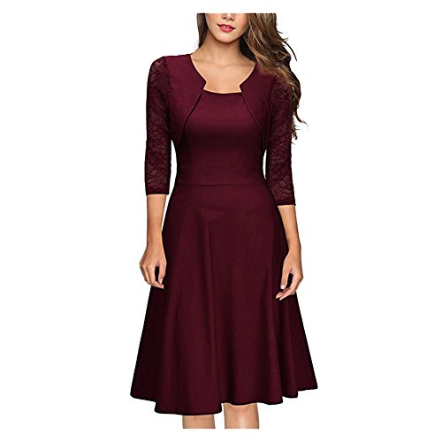 -. Feature : &ACHTUNG&: Bitte schauen Sie sich die Größentabelle auf den Bilder bevor bestellen. / Spezielle Ausschnitt: 3/4 Ärmel, Knielang,Reißverschluss Rückseite. / Weiche Spitze: Die Spitze der Ärmel ist sehr weich und kratzt kein bischen! Das Kleid paßt wie eine zweite Haut / Angenähter Bolero: Oben ist ein Bolero angedeutet, welcher aber fest am Kleid vernäht und nur auf der Vorderseite sichtbar ist. / Anläße:Business,Casual,Picknick,Rockabilly,Festival,Feierlichkeit,Freudenfest,Hochzeitsfeier und 50er Jahre Party usw.