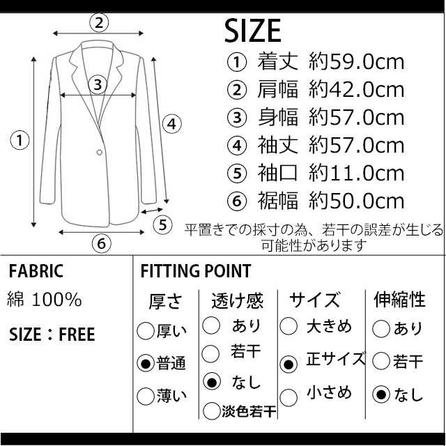 FREE 本体:着丈59cmバスト57cm袖丈57cm裾幅50cm