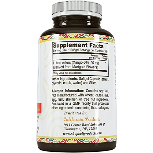 -. Title : 100% Lutein Pills for Healthier Eyes - Improve Vision and Clarity - Stop Macular Degeneration - Best Ocular Vitamins - Pure Plant Extract - Natural Supplement for Men & Women by California Products