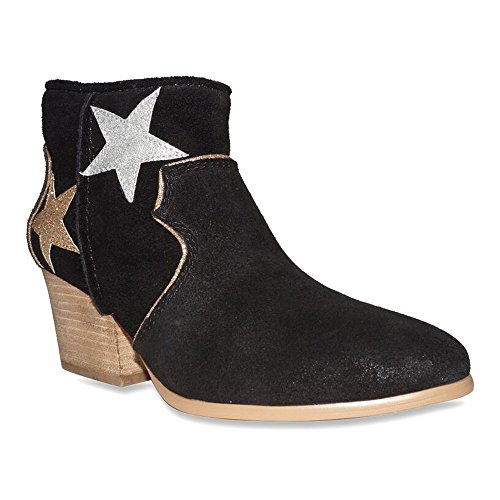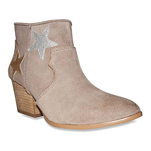Product DescriptionWestern inspired ankle boot with metallic star inserts and contrasting stitching0