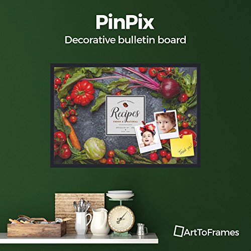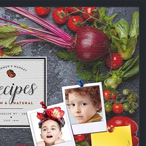 PinPix decorative pin cork bulletin board made from canvas, Recipe Board with Dark Vegetables 36x24 Inches (Completed Size) and framed in Satin Black (PinPix-Group-36)