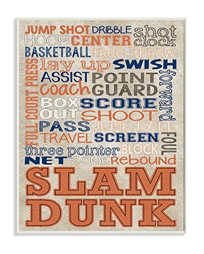 Stupell Home Décor Orange and Navy Basketball Typog Wall Plaque Art, 10 x 0.5 x 15, Proudly Made in USA