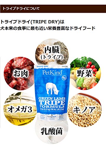原材料:●原材料ラムトライプ,ターキー,エンドウ,乾燥ターキー,ピープロテイン(エンドウタンパク質),キャノーラオイル(ローズマリー抽出物で保存),フラックスシード,ナチュラルフレーバー(鶏レバーオイル),キノア,カボチャ,ホウレンソウ,ニンジン,ブロッコリー,クランベリー,リンゴ,ブルーベリー,バナナ,炭酸カルシウム,塩化ナトリウム,塩化カリウム,第二リン酸カルシウム,サーモンオイル(ミックストコフェロールで保存),チコリ根,塩化コリン,ビタミンA,ビタミンD3サプリメント,ビタミンE,ナイアシン,パントテン酸カルシウム,リボフラビン,硝酸チアミン,塩化ピリドキシン,葉酸,ビタミンB12サプリメント,硫酸亜鉛,硫酸鉄 ,亜鉛タンパク化合物,鉄タンパク化合物,硫酸銅,酸化マンガン,銅タンパク化合物,マンガンタンパク化合物,ヨウ素酸カルシウム,亜セレン酸ナトリウム,タウリン,乾燥ラクトバチルス・アシドフィラス発酵産物,乾燥ラクトバチルス・カゼイ発酵産物,乾燥ビフィドバクテリウム・サーモフィラム発酵産物,乾燥ストレプトコッカス・フェシウム発酵産物,ユッカ根エキス,ローズマリー,唐辛子,ペパーミント,タイム,緑茶抽出物●保証分析値粗タンパク質30.0%以上、粗脂質16.0%以上、粗繊維質4.0%以下、水分10.0%以下、粗灰分7.0%以下、リン0.8%以上、マグネシウム0.10%以下、タウリン2790mg/kg以上、オメガ6 2.5% 以上、オメガ3 1.4% 以上