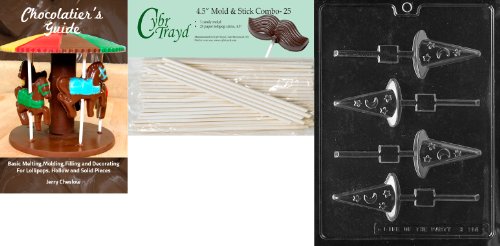 Cybrtrayd 'Witch's Hat Lolly' Halloween Chocolate Candy Mold with 25 4.5-Inch Lollipop Sticks and Chocolatier's Guide