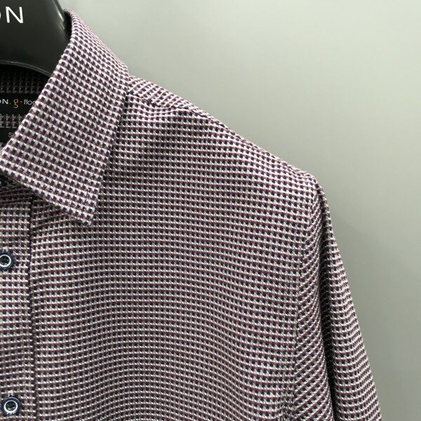 와인컬러 바탕에 유니온잭 패턴감이 들어간 캐주얼 셔츠 입니다.