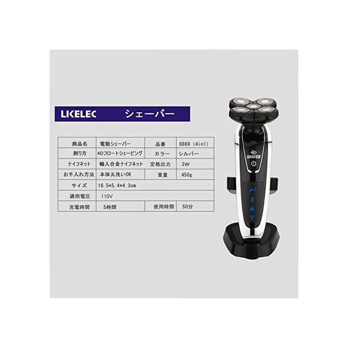 원본상품명: LKELEC電動シェバ 水洗い電動メンズシェバ4D回式電動メンズシェバ充電シェバ 五刃センソタッチ密着ヘッド 本丸洗い可能お風呂剃り可急速充電可肌にやさしい省電力音頑