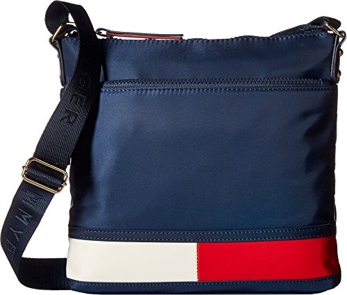 Stamp your casual style with fashion gold when you flaunt the Tommy Hilfiger® Nori Flag Large Nylon Crossbody bag. Made of nylon. Zipper closure. Adjustable crossbody strap. Exterior front zip pocket. Lining made of polyester. Interior back-wall zip pocket and key hook. Three interior slip pockets. Imported. Measurements: Bottom Width: 11 in Depth: 1 1⁄2 in Height: 10 1⁄2 in Strap Length: 50 in Strap Drop: 24 in Weight: 11.4 oz This product may have a manufacturer's warranty. Please visit the manufacturer's website or contact us at warranty@support.zappos.com for full manufacturer warranty details.Feature