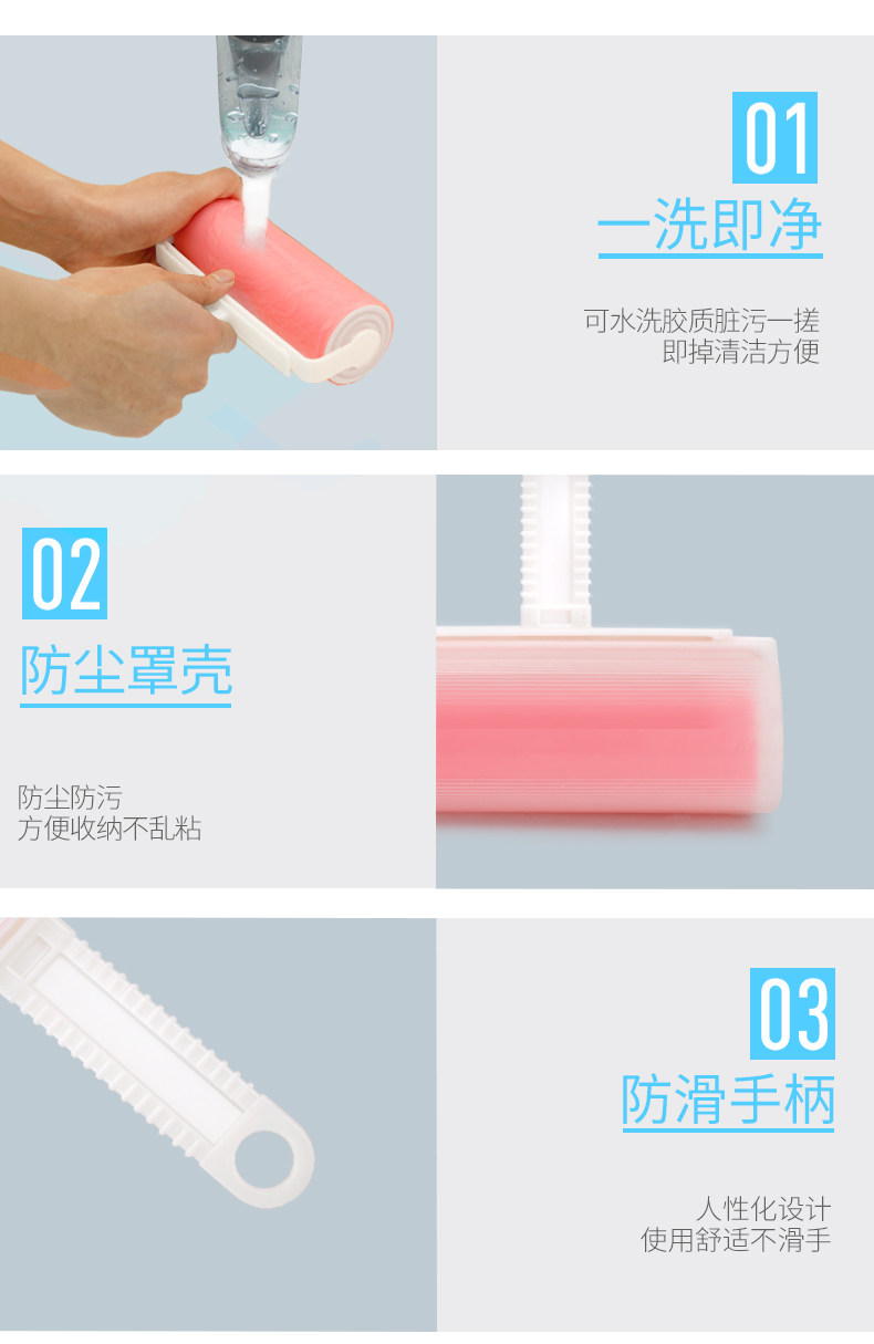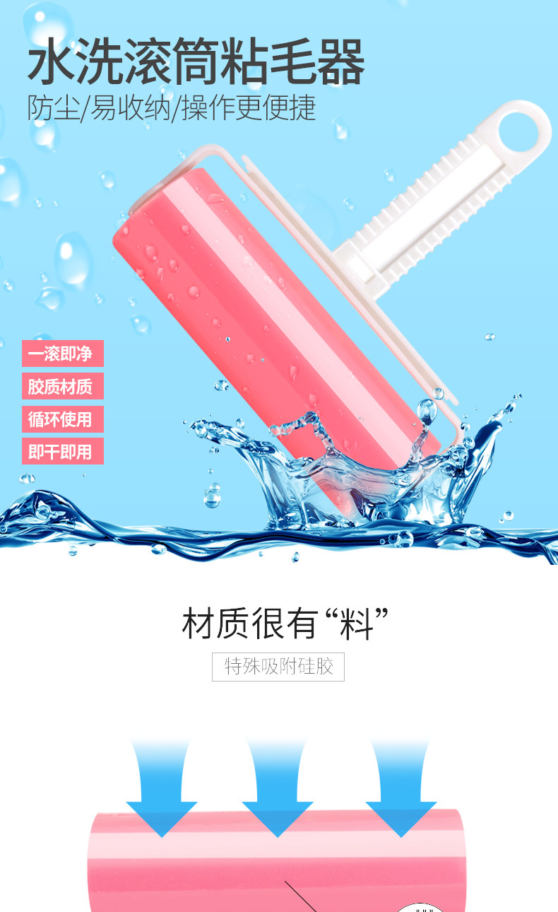 可水洗粘毛器粘毛滚筒粘尘纸吸衣服除尘器非可撕式衣物沾毛刷