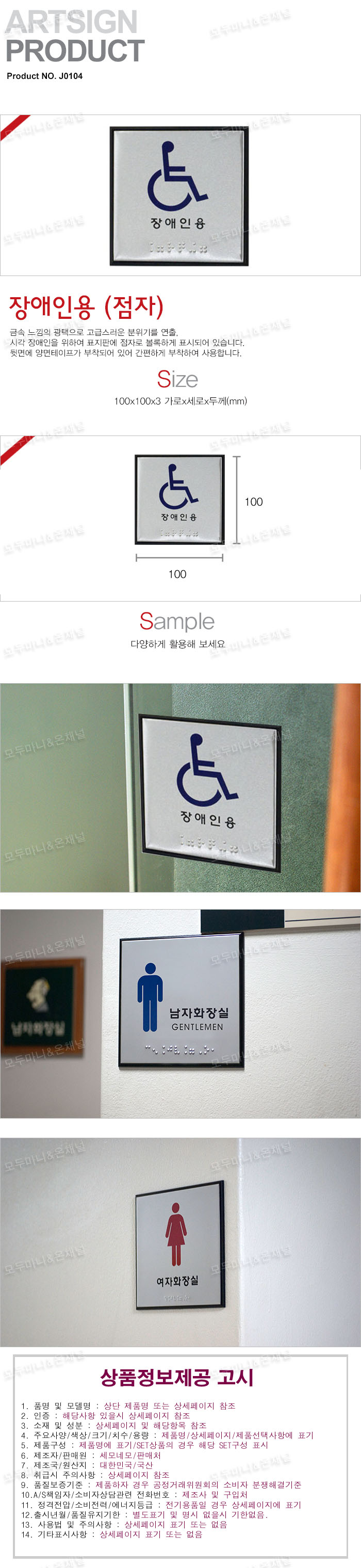 - 품명 및 모델명장애인용화장실 알루미늄점자표지판