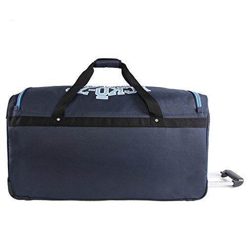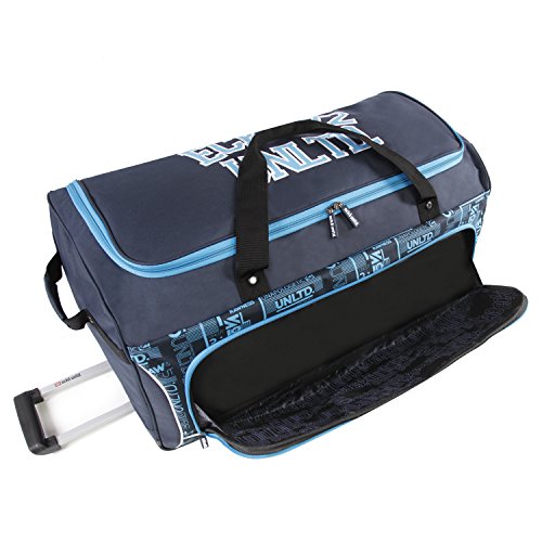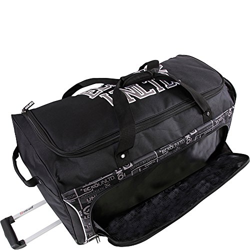 Studio : American Traveler, Inc. Parent Code (Luggage) Publisher : American Traveler, Inc. Parent Code (Luggage) Binding : Apparel Product Description With a spacious main compartment, plus front and side zippered pockets, the alpha rolling duffel bag can help you easily haul all your gear. Get to your destination with an internal push button handle system and smooth gliding in-line recessed wheels. The ecko untld alpha rolling duffel bag is your next go-to duffel bag. 0