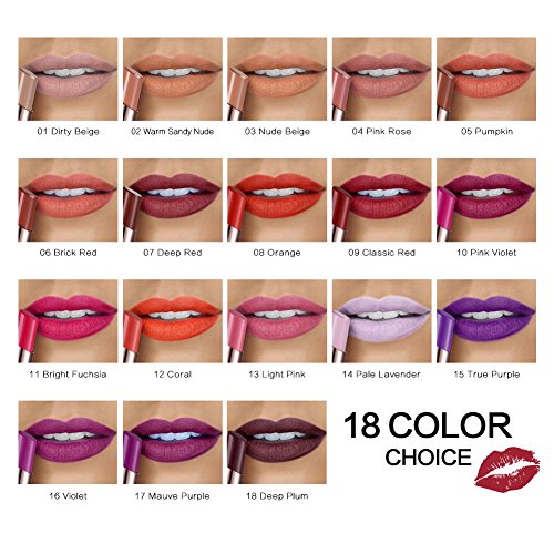 -. Feature : Matte High Pigment Rouge Lipstick leaves lips with a luscious matte-velvet finish. Texture is comfortable and moisturizing that lasts over 8 hours. / Create a flawless, natural look with this lightweight lipstick. Enhanced with Vitamin E and Shea butter for moisture, these lipsticks provide a soft, natural looking finish. / This silky, matte lipstick glides easily onto lips to lock on moisture with vibrant matte color. / The rich, creamy formula seals in moisture for long-lasting wear and comfort. / Matte Full-coverage lipstick that is super long-wearing, ultra comfortable, and loaded with pigment.