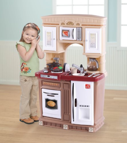 Features "stainless steel" microwave, refrigerator and oven. Heat up the fun with the microwave's electronic key pad