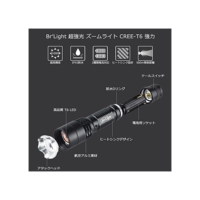 원본상품명: BrLight 米CREE社製超高輝度LED使用 CREE XM-L T6 LED 500m先まで照射可能!! 超光ズムライト (CREE-T6 力)