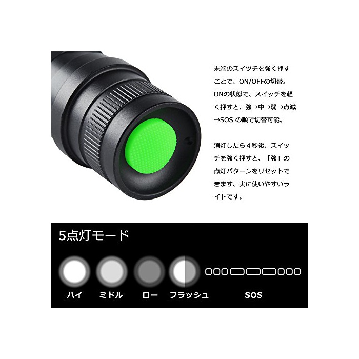 5개의 조절 가능한 밝기:하이/미들/로우/플래쉬/SOS SOS신호 패턴점 기능 첨부 와!막상 이라고 하는 때(로는) 위력을 발휘에서 옵니다!어두운 밤길의 혼자서 걸음 등의 방범용이나,바다나 등산 등에 필휴 하면,위험을 느낌 서게 되 등 커다란력을 발휘합니다.