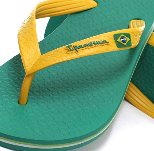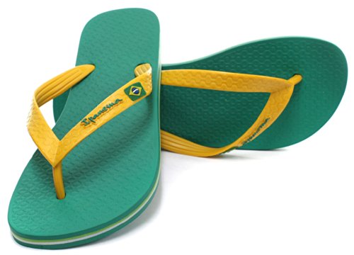 -. Binding : Apparel -. Brand : Ipanema -. Color : Colour Missing -. Department : mens -. Feature : Updated for 2014, the Ipanema Flag II is the authentic Brazilian flip flop with a classic Brazilian design / Made from 100% recyclable PVC / Displayed on one of the straps is the Ipanema logo as well as a 3D Brazilian flag / Features the iconic Ipanema Beach tiles embossed onto the soft footbed / Made in Brazil -. Label : Ipanema -. Manufacturer : Ipanema -. Model : 80415AYELLOWBLUE -. NumberOfItems : 1 -. ProductGroup : Shoes -. ProductTypeName : SHOES -. Publisher : Ipanema -. Studio : Ipanema -. Title : Ipanema Brasil Flag II Mens Beach Flip Flops